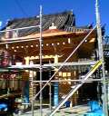 10月30日(水) 屋根の銅板葺きがほぼ出来上がり、頂上に金色の宝珠が載せられた。 |